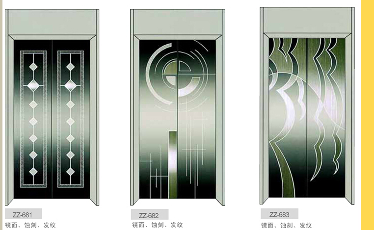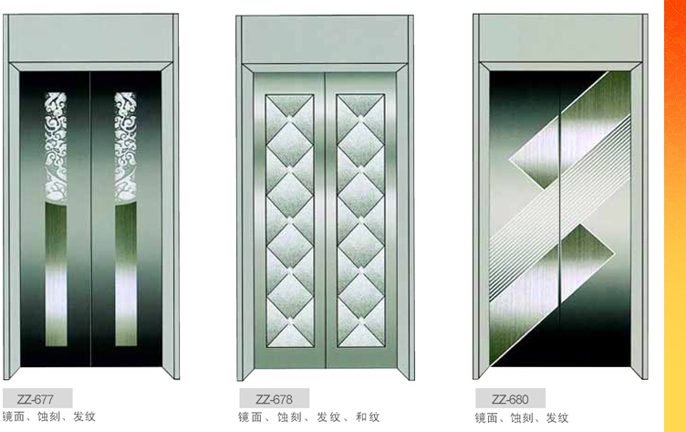 我公司专业生产电梯装潢配套产品,产品有镜面板、钛金板、刻花板(蚀刻系列可以根据客户要求定制)、发纹板、和纹板、砂面板、三维立体工艺板。电梯装潢可以使电梯轿厢的有限空间变得宽敞明亮,使自动扶梯成为公共场所一道亮丽的风景线。让乘客赏心悦目,得到新奇的感觉。我公司以优惠的价格、一流的品质、优质的服务为经营理念,秉承亲和团结、创造机会、服务社会、永续经营的管理风格,为打造电梯装璜的一代精品而受到广泛赞誉。