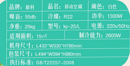 新科KY-25L大1P一体免安装可移动空调-复合高效除甲醛