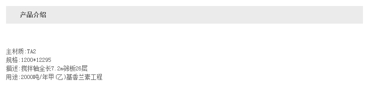 诺维嘉公司主要生产石油化工类设备,主打产品:分子蒸馏器,蒸汽发生器,聚合釜,如塔类设备,反应釜(电加热、蒸汽加热式)、发酵罐;GXZ旋转式薄膜蒸发器、结晶锅、喷雾干燥机,换热器等;制药、中成药生产线、口服液生产线;反应锅类如多功能提取罐,外循环蒸发器、高效浓缩器、冷冻沉淀罐、酒精回收塔、真空干燥箱、混合机、杀菌等。其他设备如:水处理设备,除氧器、容积式水加热器、分汽包等。