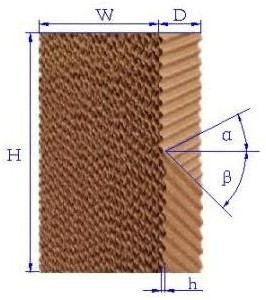 “涨杨”牌湿帘为特种纸制蜂窝结构材料,波高为5mm和7mm两种,波纹为45°×45°交错对置。采用新一代高分子材料与空间交联技术,高吸水、高耐水、抗霉变、使用寿命长。