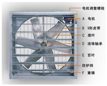 F. 独特的百叶片自动开关机构,借助二个无须动力的百转重锤,配置自动装置来实现的,这种独特机构可确保风机连续多年运行都无故障。