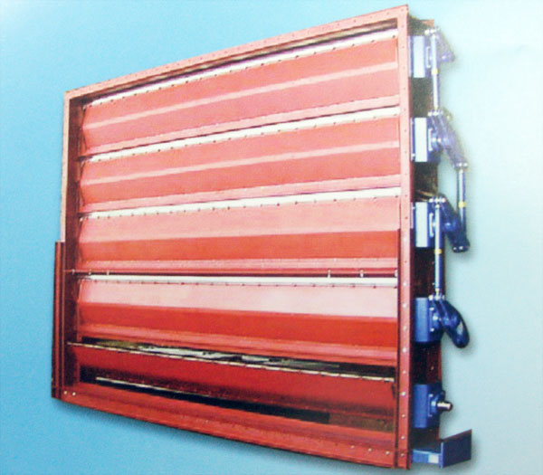 调节挡板风门主要由由框架、叶片、主轴、轴承、轴封、曲柄连杆机构、执行机构(选购件)等几部分组成。框架采用钢板折压成形、型钢焊接成形或铸造成形,叶片采用钢板折压成形或铸造成形,截面流线形叶片确保介质压损极小。如需要具备关断功能,要在订货时加以说明,我公司会特别在叶片与叶片间、叶片与框架间设有特殊弹性密封结构,确保叶片关闭时其前后的密封率可达99%以上。叶片与主轴之间采用专用紧固件连接,调节挡板风门安装在管道上后,可以拆卸任何部件,并保证在工作状态下可以方便地检修或更换部件。轴颈处采用专用密封结构及专用轴承,专用密封结构其密封性能良好、无外泄、耐高温,专用轴承具有自动调心及自动补偿功能,可以自动补偿前后轴的同轴度偏差,确保调节挡板风门阻力小、无卡涩、转动灵活。曲柄连杆机构上配有专用轴承,确保传动阻力小。手动、电动或气动执行机构可直接与驱动主轴连接或采用曲柄连杆机构形成远方传动,执行机构也可由用户自配。