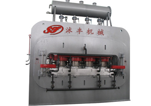 本公司生产的SFYJ-600、SFYJ-1200、SFYJ-1400、SFYJ-1600、SFYJ-1800、SFYJ-2000、SFYJ-2400、SFYJ-2800系列热压机采用上置式油缸,框架式结构,配备变频调速进板输送装置,及出板滚动托架,该机采用先进的PLC编程控制,具有操作简单,维护方便,产量高,设计合理,安全可靠,安装和占地面积小的优点。产品规格有4×8英尺、4×9英尺、5×8英尺、5×9英尺、6×8英尺、6×9英尺、7×9英尺板材,特制规格尺寸可按用户要求定制。