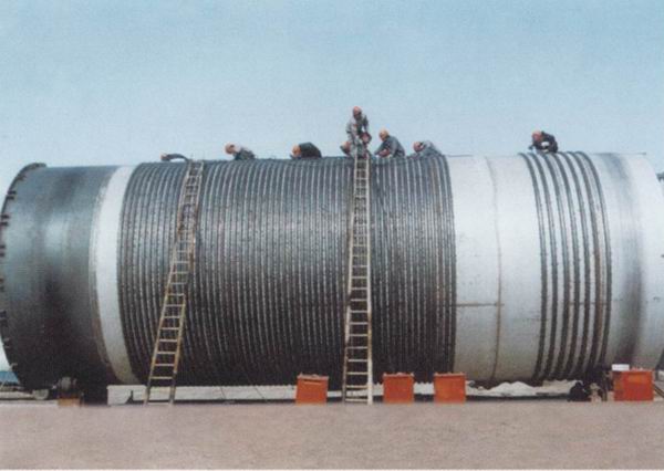 我公司设计的发酵罐为标准式罐型,这种罐型当公称容积在6M3以下时罐采用夹套式。发酵气的冷却或加热,均由夹套来完成。公称容积为6M3以上时,发酵气的冷却由立式排管来担负,在罐内排管的连接方面我们作了改进。这主要避免在罐体上多开孔,开成死角。这种连续方式在实际使用中得到满意的效果。