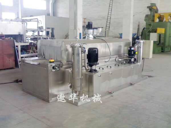 工艺流程:人工上件→连续通过清洗室→漂洗室→压缩空气吹水室→热风烘干室→人工下件。