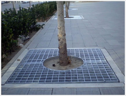 树池盖板采用钢格板设计制造。外型现代,简洁美观,高强度不断裂。镂空率达90%,是水泥和铸铁盖镂空的数倍,排水好,使树底的草能充分接触空气和阳光。热浸锌表面,可永久防腐。设计有方便安装及拆卸装置。广泛用于市政道路、园林、广场、商住小区等。
