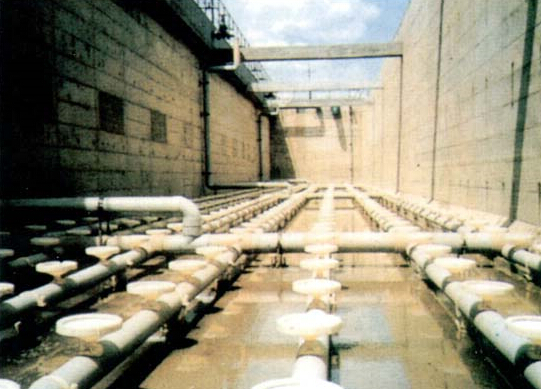 射流式曝气设备是利用空气与水接触曝气的一种方法,曝气设备主要由喷嘴(Lnner Nozzel)。外嘴(Outer Nozzle)及混合室(Mixing Chamber)所构成。循环水由池中经循环泵抽送至内喷嘴,转换成高速低压的水流,高速水流进入高剪力的混合室,低压的空气垂直送入,水流与空气进入高剪力的混合室内有效的混合,产生极小的气泡,经外嘴水平射入池中,水平运动如云雾状的水流较一般的曝气系统维持较长时间的高压,空气有加大的机会溶解于大水量中,当云雾状的水流水平运动之动力消失,空气自然上升至水面并产生起生效应,让池中的水得到充分的搅拌,同时云雾状的水流也造成分子扩散与旋涡反应,确保高传氧效率。