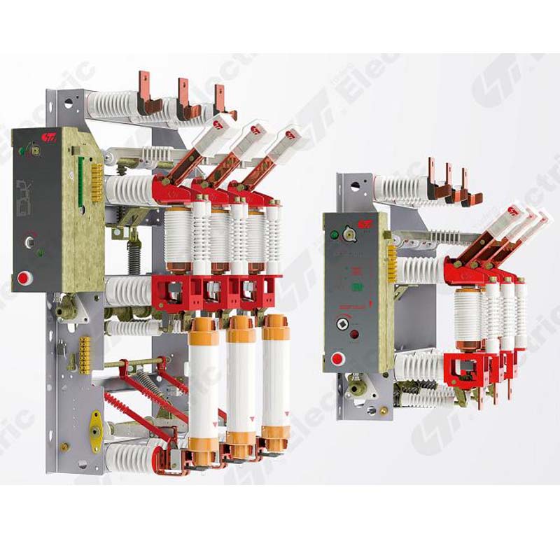 YF16B(YFZN16B)-12系列户内交流高压真空负荷开关及负荷开关-熔断器组合电器(以下简称:系列真空负荷开关)是我公司自行研制成功的,性能大搞GB3804-2004《3.6-40.5kv高压交流负荷开关》,GB16926-2009《高压交流负荷开关-熔断器组合电器》国家标准、和IEC420国家标准的要求。具有体积小、开断安全可靠、电寿命长、可频繁操作、开断转移电流、短路电流大、有明显的隔离断口,且具有手动和电动两用功能,可实现远距离控制,满足智能电网要求等优点。本产品采用自行研制并获得多项国家发明专利的CTE2两级传动弹簧操作结构,操作简单可靠。