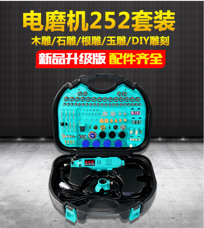 长直柄带软轴252件套电磨机 工业电钻组合 钻孔切割打磨DIY雕刻机