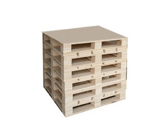 以原木为材料,进行干燥定型处理,减少水分,消除内应力,然后进行切割、刨光、断头、抽边、砂光等精整加工处理而形成型材板块,采用具有防脱功能的射钉(个别情况采用螺母结构)将型材板块装订成半成品托盘,最后进行精整、防滑处理和封蜡处理。木托盘是现在使用最广的托盘。托盘是用于集装、堆放、搬运和运输的放置作为单元负荷的货物和制品的水平平台装置。一般用木材、金属、纤维板制作,便于装卸、搬运单元物资和小数量的物资。