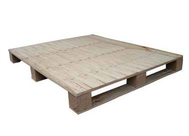 以原木为材料,进行干燥定型处理,减少水分,消除内应力,然后进行切割、刨光、断头、抽边、砂光等精整加工处理而形成型材板块,采用具有防脱功能的射钉(个别情况采用螺母结构)将型材板块装订成半成品托盘,最后进行精整、防滑处理和封蜡处理。木托盘是现在使用最广的托盘。托盘是用于集装、堆放、搬运和运输的放置作为单元负荷的货物和制品的水平平台装置。一般用木材、金属、纤维板制作,便于装卸、搬运单元物资和小数量的物资。
