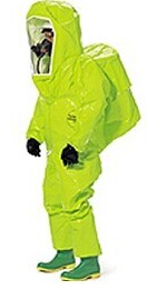 -全封闭A级气密性防护服、配有两个排气阀、PVC/ Teflon®/ PVC三层复合面罩、气密性拉链、双层拉链门襟、双层手套系统内层复合膜防化手套和外层丁基防化手套、后背部突起SCBA、带袜靴。